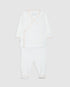 Conjunto de dos piezas para bebé confeccionado en algodón 100% pima orgánico, el tejido más suave, transpirable e hipoalergénico para los primeros días de vida.