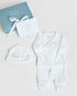 Pack de regalo compuesto por conjunto kimono + polaina y gorrito a juego, confeccionados en algodón 100% pima orgánico.