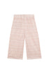 Our classic pink gingham pants with a button-front and elastic waist. They feature a floral print back pocket.