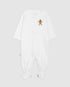Pijama bebé en una pieza confeccionado en 100% algodón pima; tejido hipoalergénico, de cultivo ecológico, y ello junto con su suavidad sublime, lo convierte en el mejor tejido para proteger y cuidar la piel de los bebés.