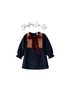 Vestido de navidad en velvet azul marino con pechera flores navideñas y zig zag burdeos alrededor. De nuestra marca amiga Kiddo.